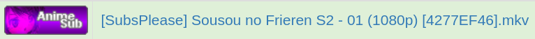 Subsplease's upload of Frieren WEB-dl in x264 without transcoding. ![]() | |